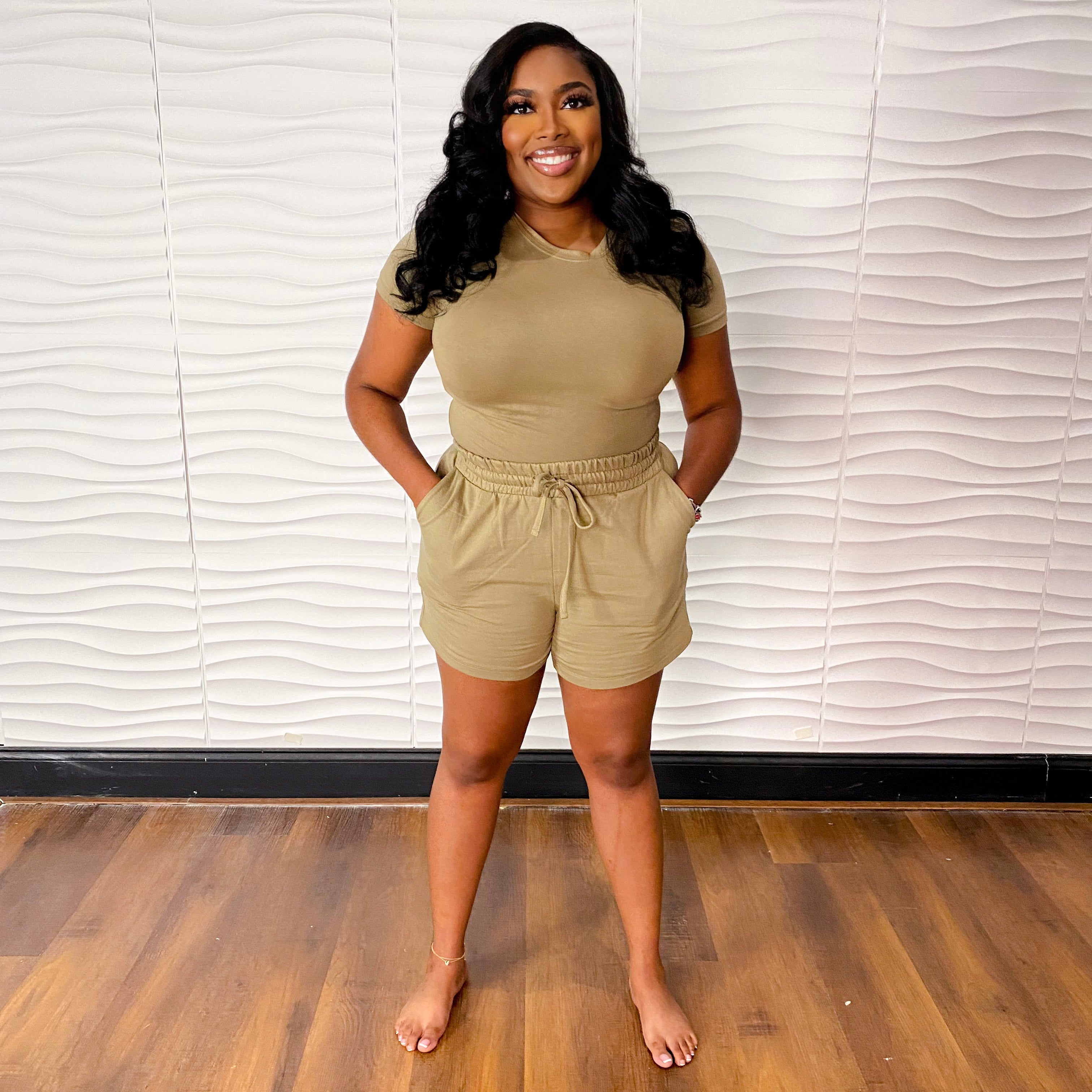 Say hello to the perfect chill and lounge around set. Our Essential Cotton Short Sleeve Tee and Short Set are composed of a versatile cotton and spandex-polyblend that is comfy enough for lounging and relaxing, and durable enough to dress up for date night or those outings with the girls.